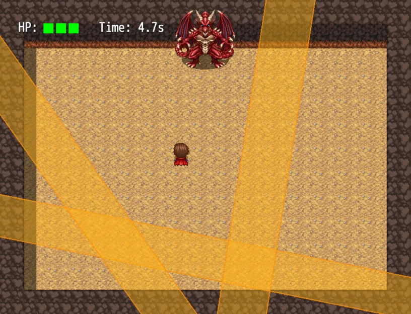ゲーム内では「竜の試練」として実装されているミニゲームです。フィールドに次々と出現するAoE(Area of Effect=範囲攻撃の予兆マーク)を避け続け、制限時間を生き延びればクリア。パターンの見極めと瞬時の判断力が試されます。