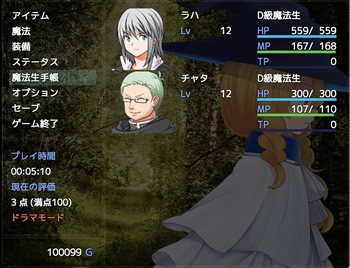 「ドラマ」モードは主人公のレベルと所持金が高い状態からスタートし、
